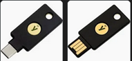 • Yubikey steckt im Notebook, mit dem goldenen Y nach oben